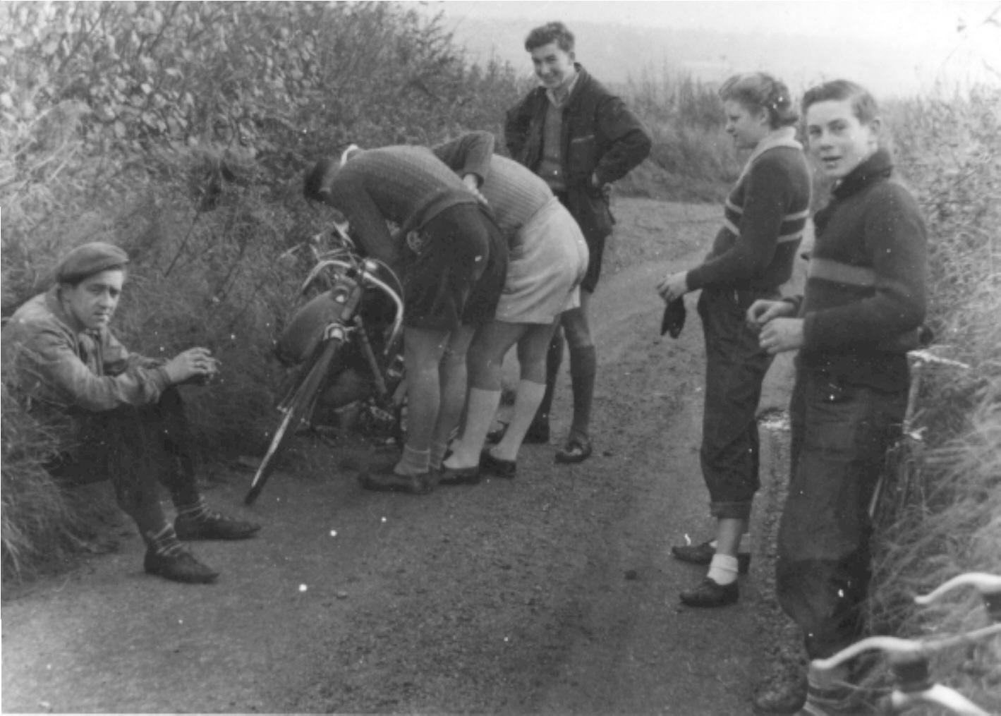Tues Apr 29th 43 miles In the morning I rushed round to Gordon Prangley's before school and gave him a 15 tooth sprocket for my block. In the evening I went for a short ride and then met the club (12 blokes) at Nell's cafe. We went down through Hatch End and round the Hare and Hounds' course. My chain jumped off so I stopped. But I then caught Tom and Boff who were about 500 yards ahead, and then we caught the rest of them at Hunton Bridge. I was back 4th at Nell's after a bit of a miscalculation on Rickmansworth hill. A very nice evening; very fast.