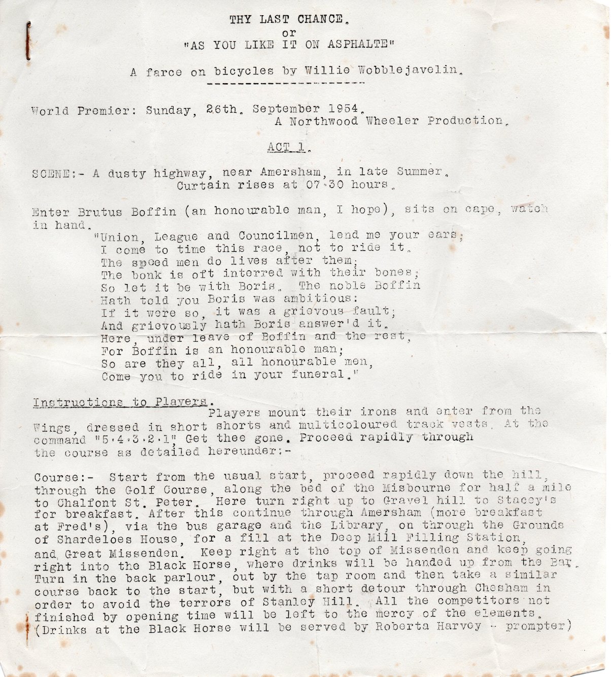 At the end of each season, the Northwood Wheelers hels a 'Last Chance' 25 mile time trial. The start sheets for these events are very amusingly written, with a different theme each year. The various club members are given 'interesting' aliases.